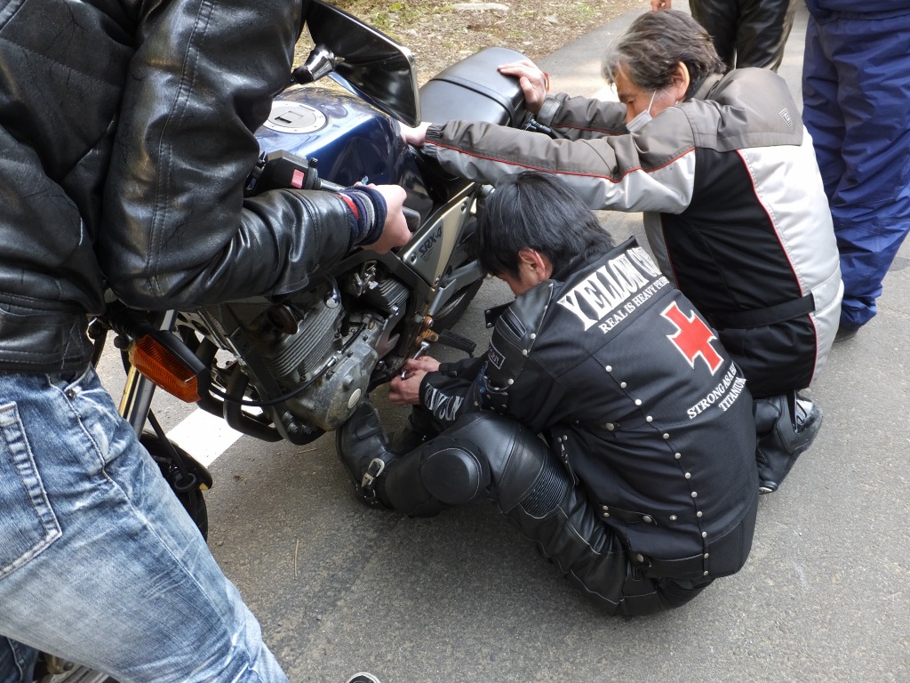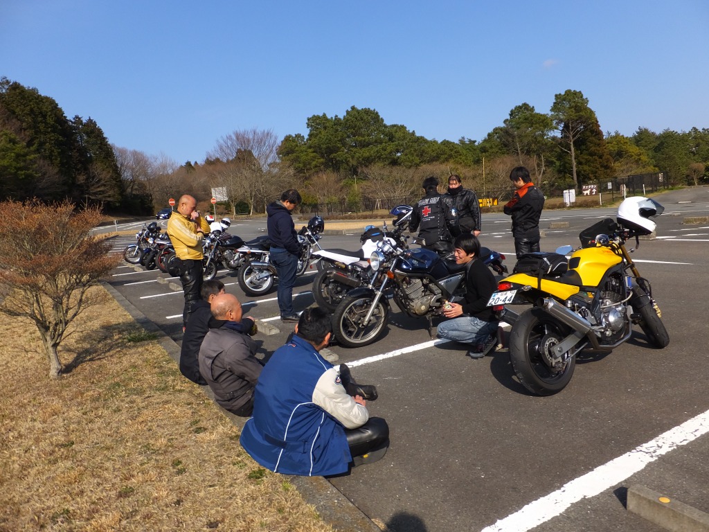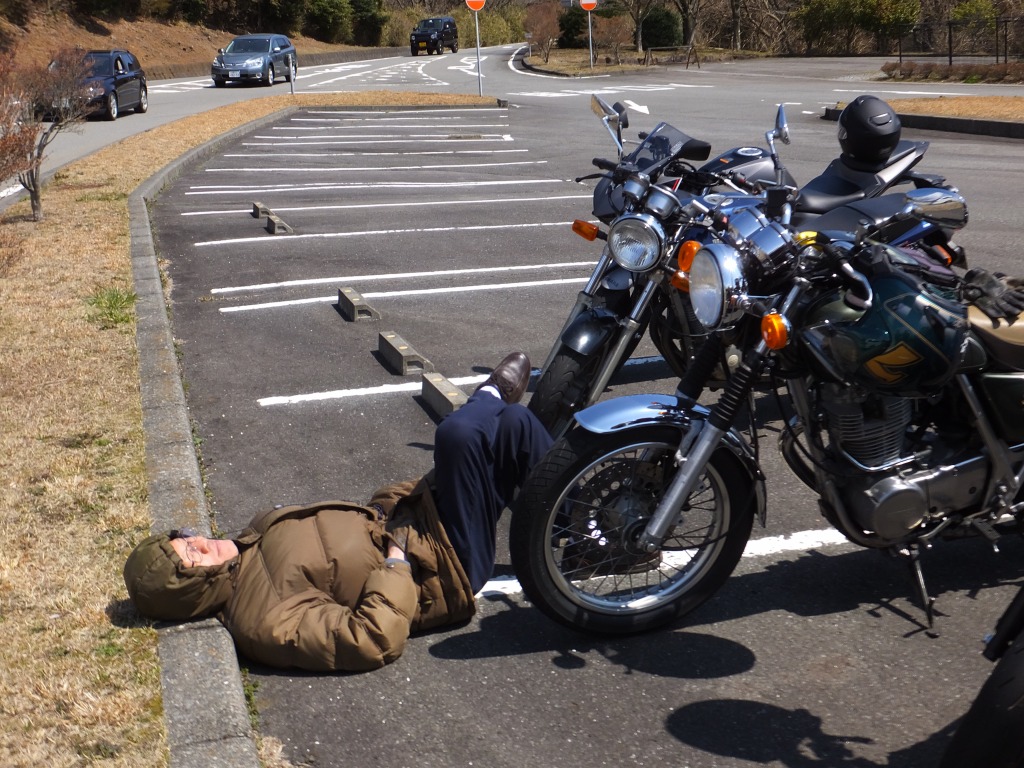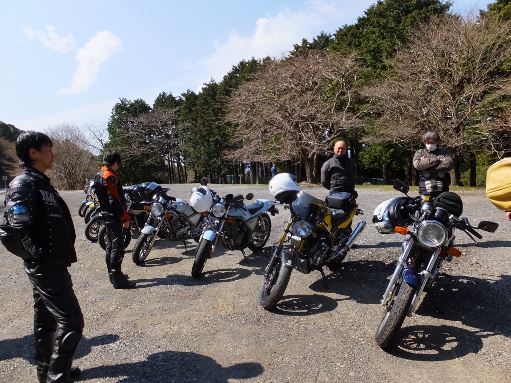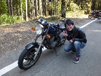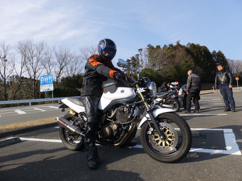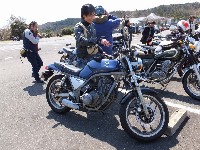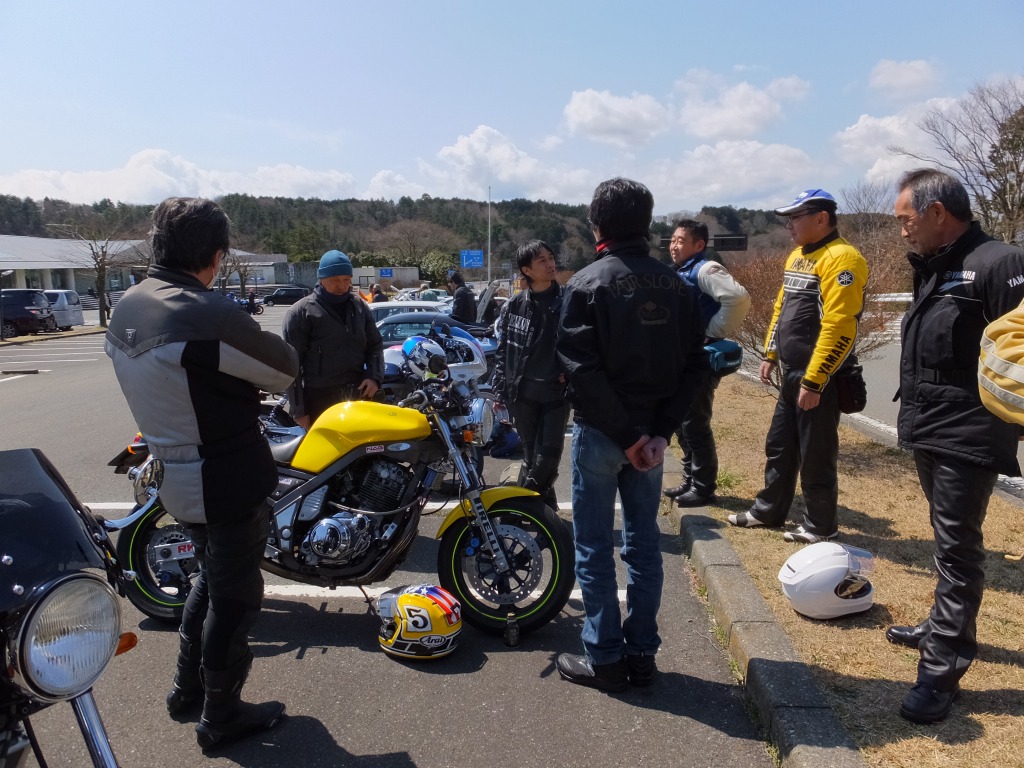 おなじみ、『峠の茶屋』にTELいっぽん入れて、民族大移動開始です。 ずらりと並んだSRXの隊列は僕らには見慣れた光景ですが、 SRXのようなフェミニンなマシンでも、 |