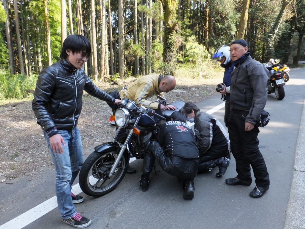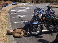 亀石PAでは、寝坊組のつねお氏がお待ちでした。黄色って灯台みたいに目立つよねw BELL氏のマシン。何をどうしたら、ここまでぴかぴかになるんだろう。 駄弁り組のしようむないお喋りに付き合うことなく、 |
