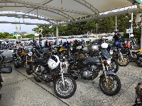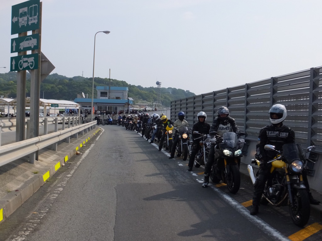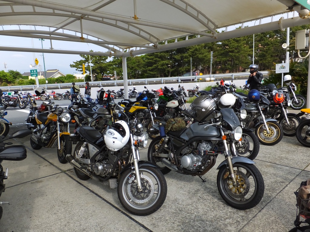ライダーとは、基本的にわかりやすい生きもの。 びっくりするほどの好天に誘われ、まんまとおびき出されてきたSRX乗りたちです。 西湘PAを出発する時点で既に30台越え!