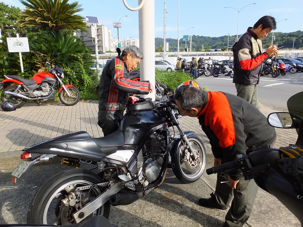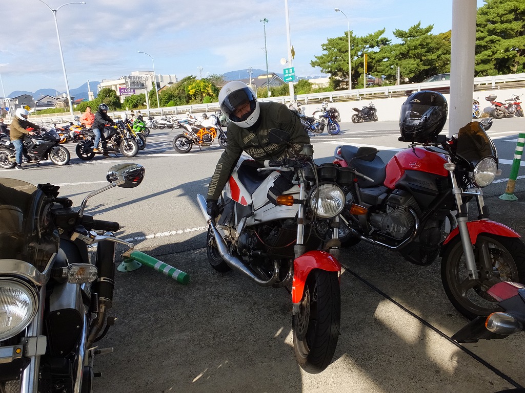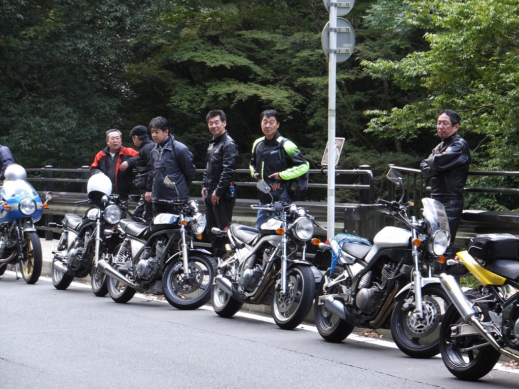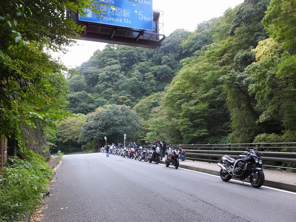 たまにOil回すためにエンジンかけるくらいで、 ここ数年間、殆ど走らせていなかったこともあって調子はイマイチ。 乗ってないバイクは各部の動きがシブいし、 オーナーの悪趣味で異常にバカでかいOilクーラーが付いてて油温がちっとも上がらず、怖くて上まで回転せない…。 だって、首都高で50度に届かないんですよ? 慣れないレプリカポジションにも苦労しました。 悪いバイクじゃないけれど、ツーリングには向いてないよね。 とはいえ、久しぶりの箱根man3。久しぶりの良い天気とあって、 がっつり愉しんできましたよ。 コンプライアンスにみんなでワイワイ。やっぱりイイよね!(誰?突っ込み入れようとしているの!?)