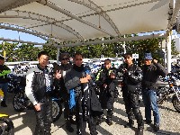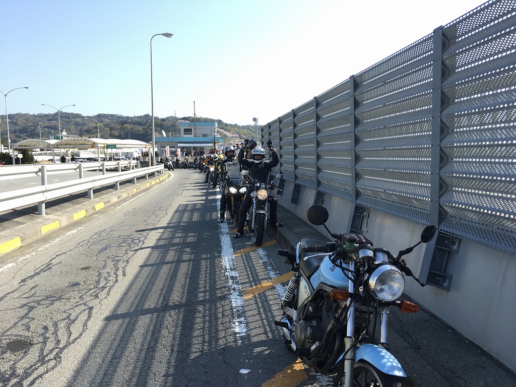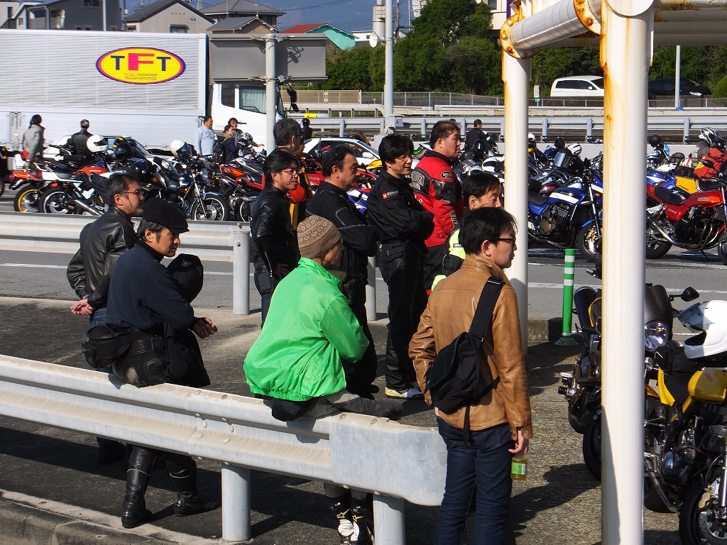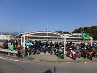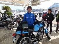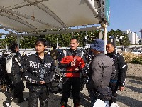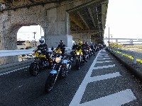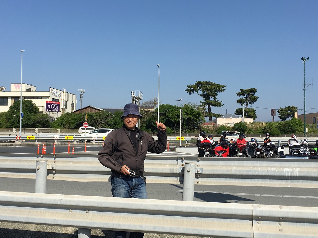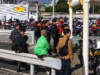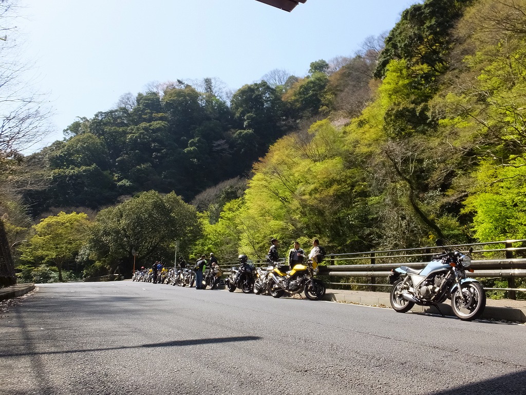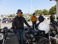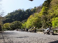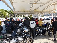 巨体のBMWを苦もなく乗りこなされるmadamada師匠。 キホンみんな同じバイクなので、正面からだとわかりづらいことがあります 1年ぶりの参戦は青3SX氏。バイクに乗るときはいつも革つなぎなんだそうで。 |