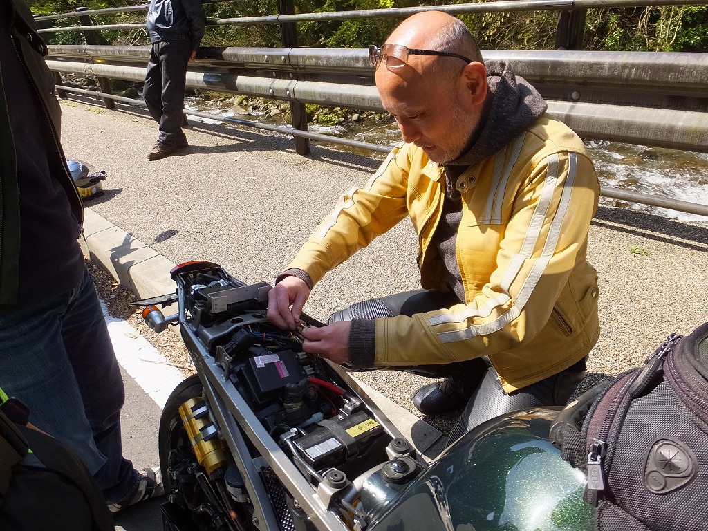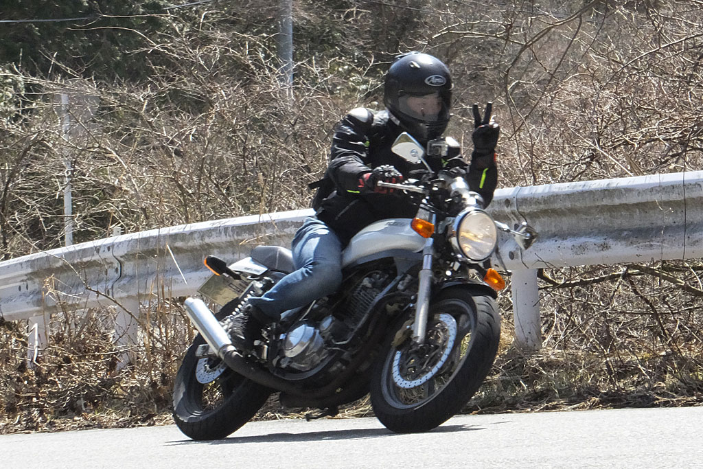SRXというバイクが生まれて、はや30年以上の年月が経過。 Wayne氏の走行写真撮影に成功したのは初めてらしい。 白タンクに爆音(?)2本出しマフラーのめってぃくんは、箱根man3最年少。 |