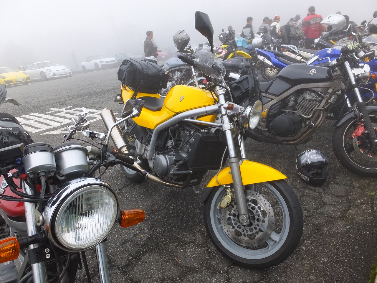一気に亀石峠までワーーーープ。 Simple氏:「予定時間過ぎても誰も来ないし、いつものアレだろうと」 大観山の方がガスっていた影響かクルマもバイクも少な目で平和なワインディングを愉しめました。 |