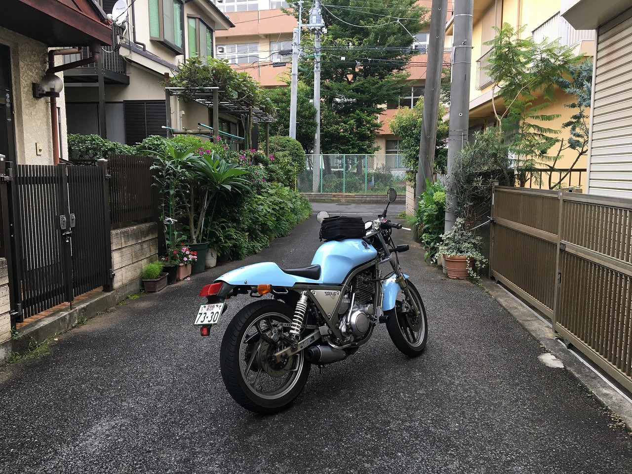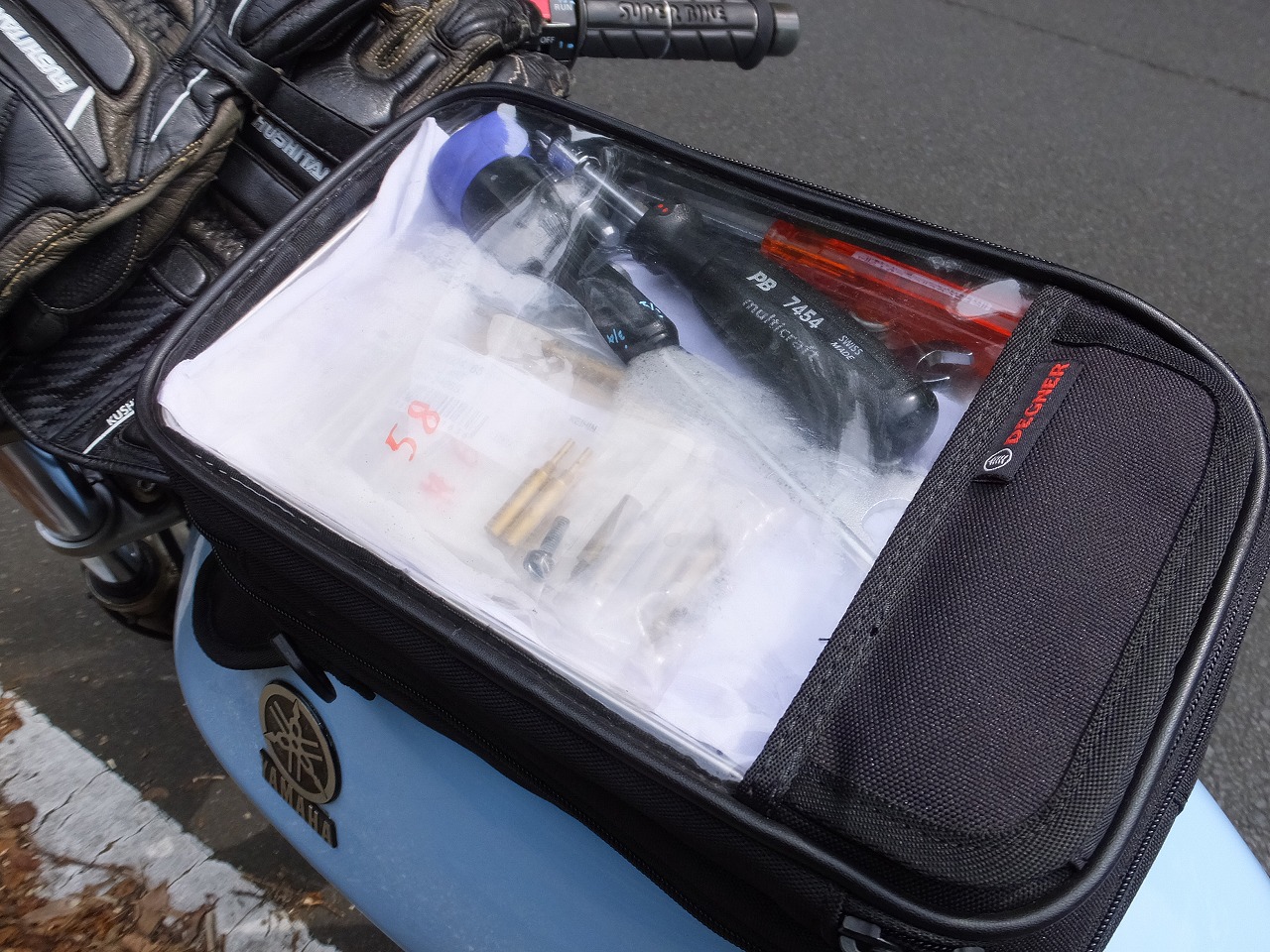 湿気がスゴい。そらいろ号のタンクバックの裏が結露しているのわかります? CRキャブのセッティングも安定してきたので、もうキャブメンテツールは要らないかも。