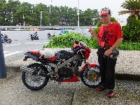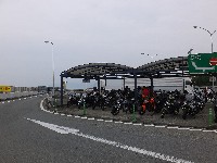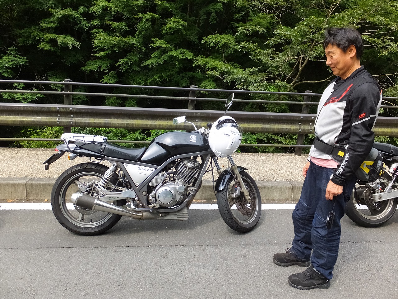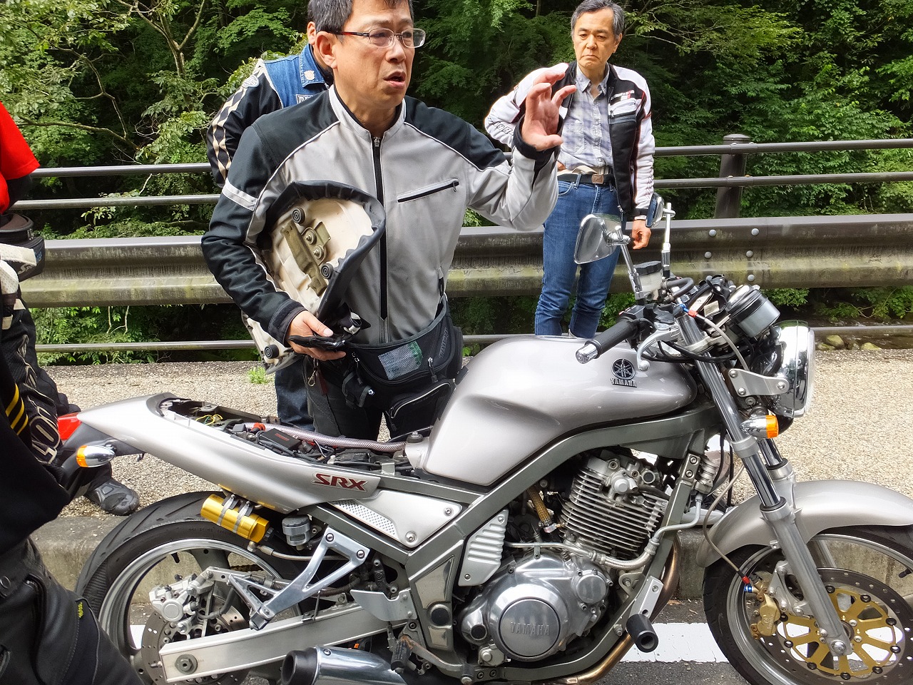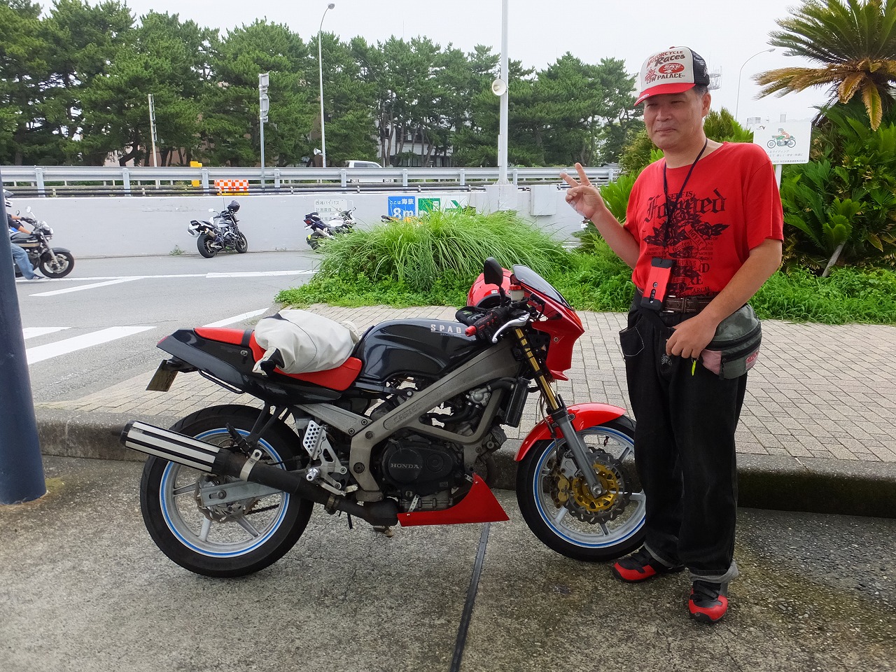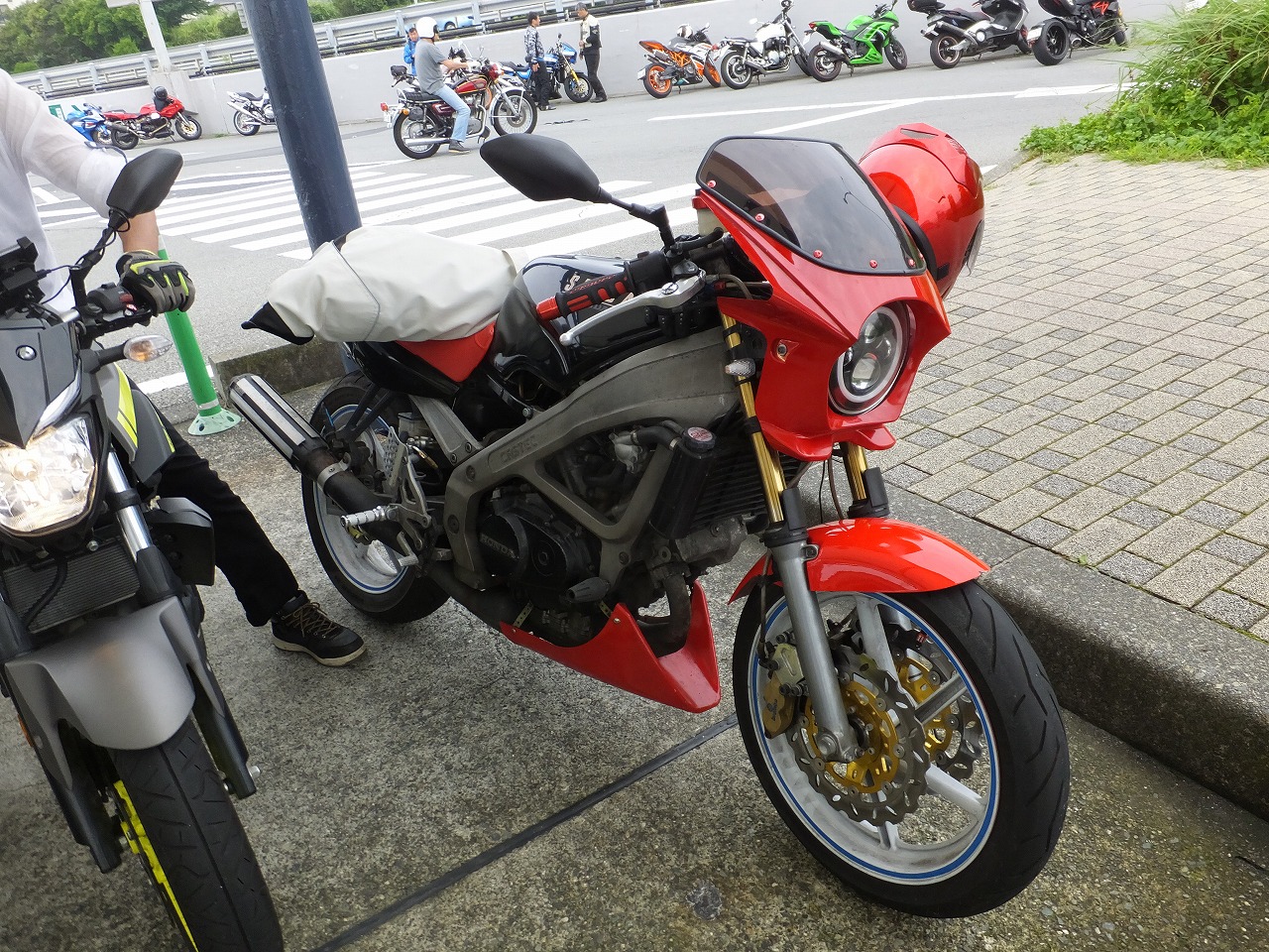 集合場所の西湘PAには、僅か2日前に右手に入ったピンを抜く手術をしたkenさんが登場。 故アイルトン・セナが広告でメインキャラを務めていたたぁゃιィバイク。それがスーパーだ。 さすがに峠道を走るには握力が心許ないようで、お見送りまでとか。