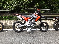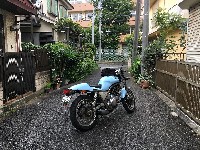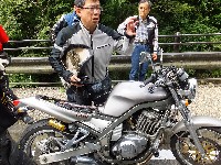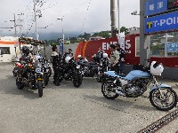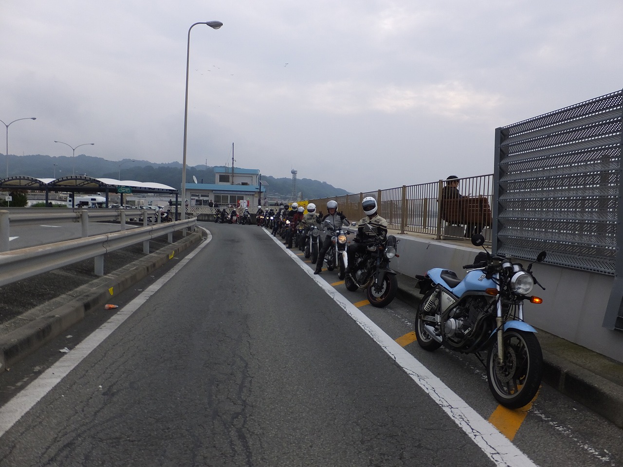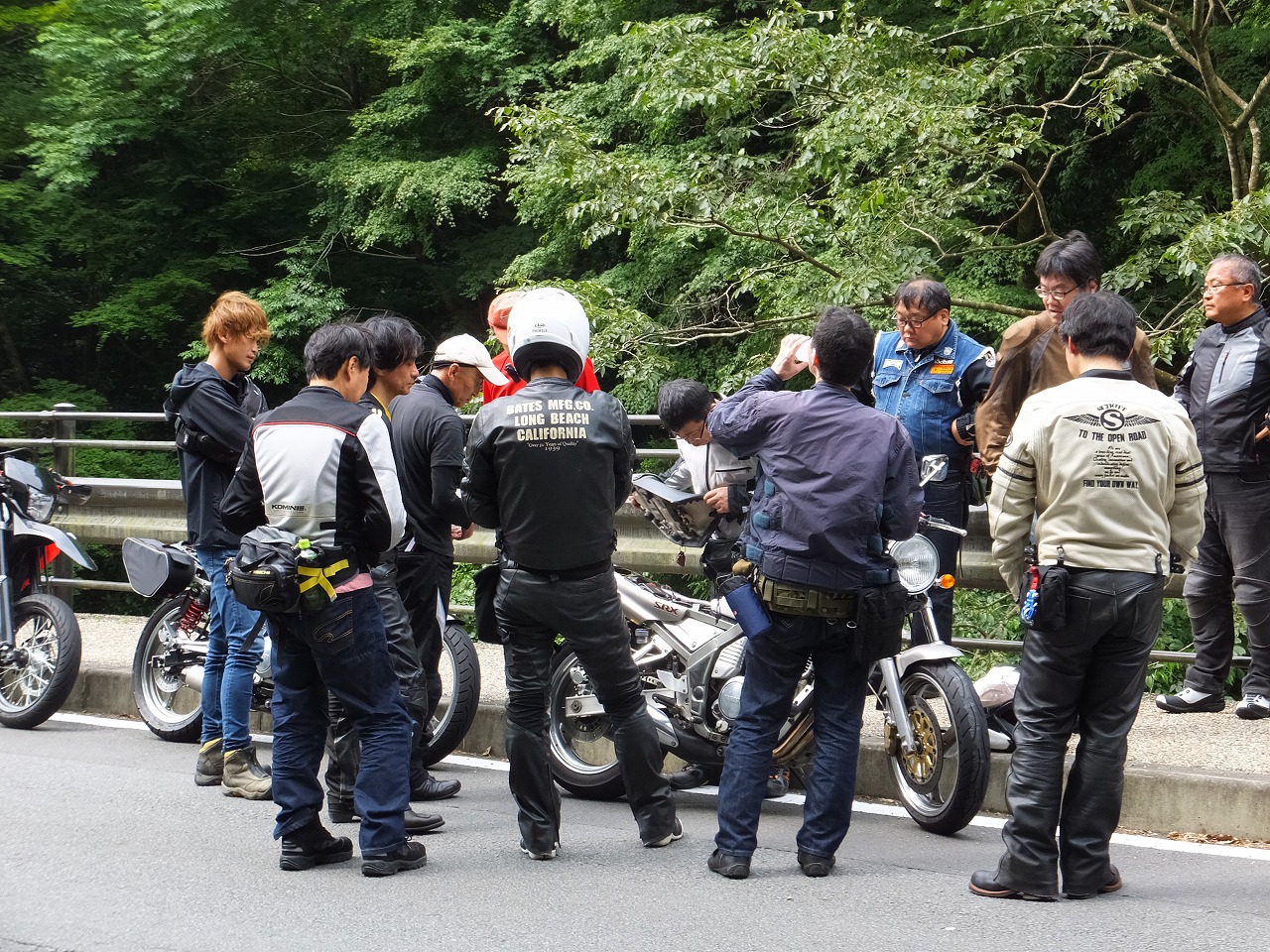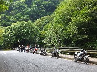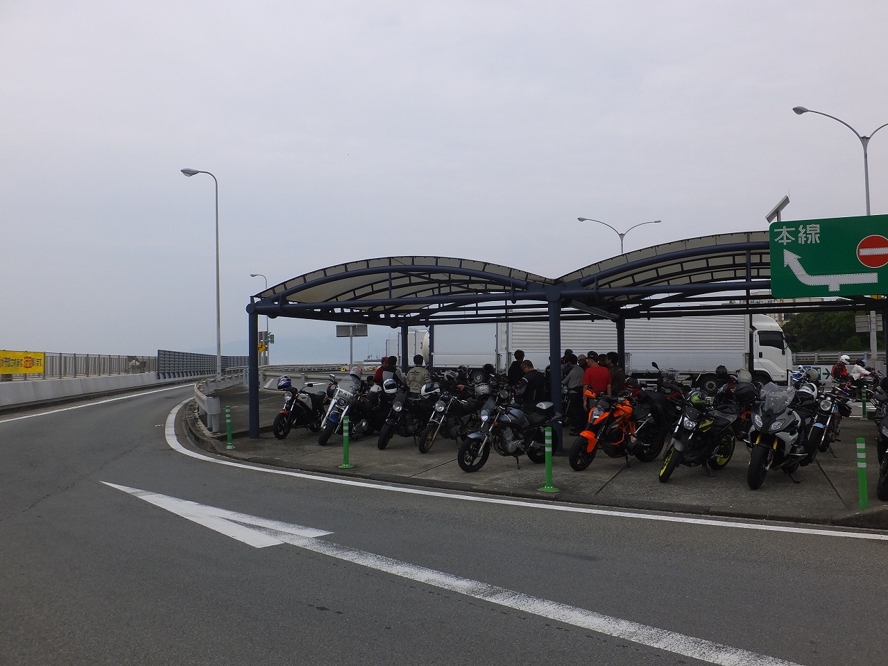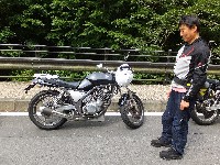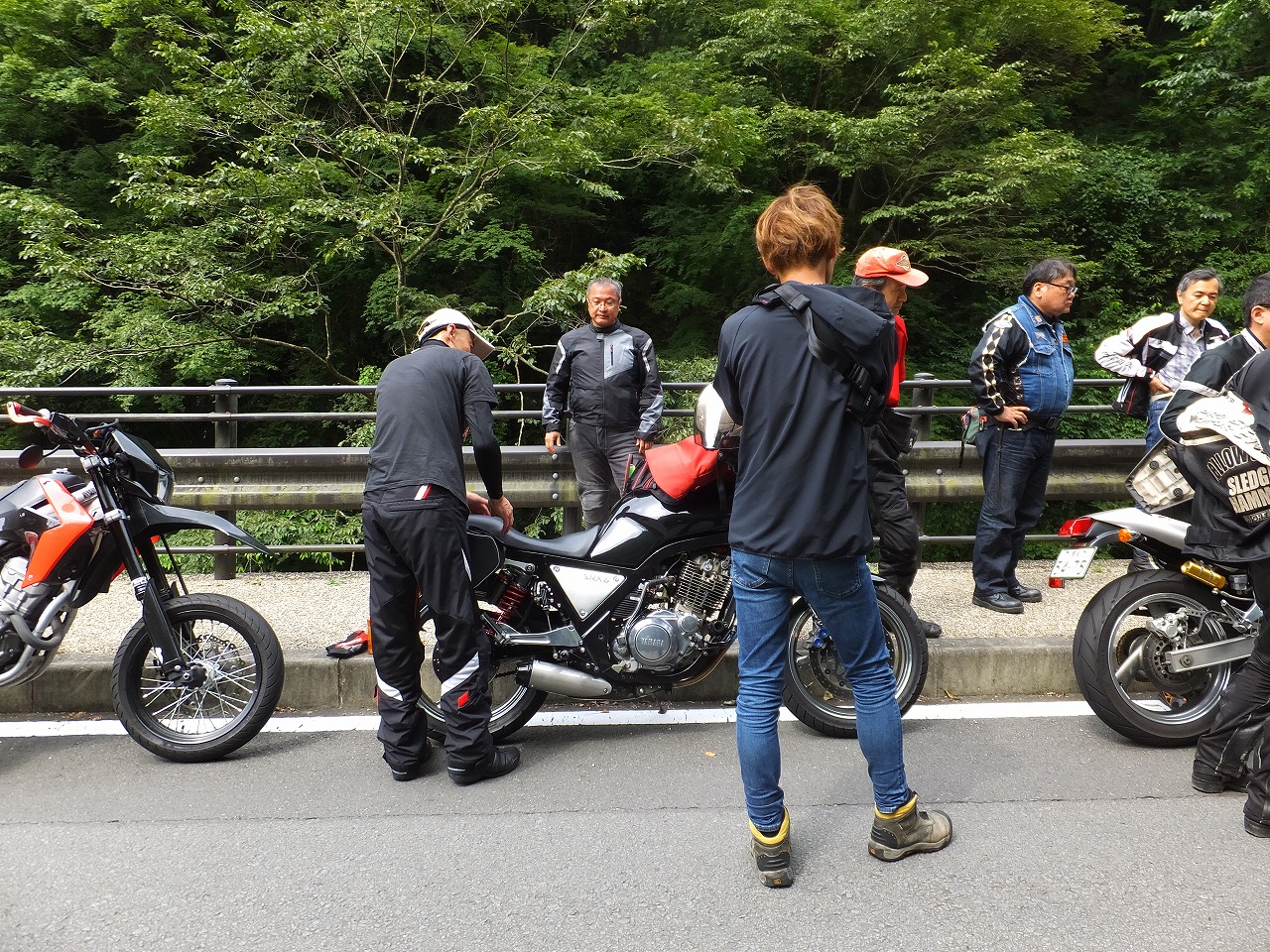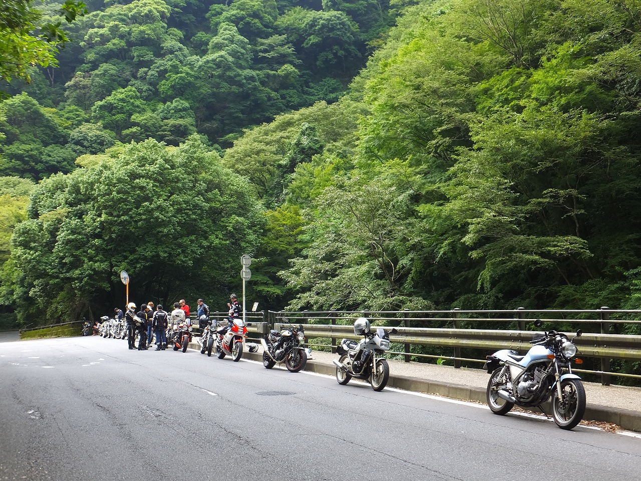 麓のGSで給油してから椿ラインに向かいます。 BSF氏はいつもの黄色いコが魔戒臓手術中(やめろーショッカーやめるんだあーーー)なので、 某オクで落としたぁゃιィバイクで参戦。こいつが400ベースなのに速いのなんの…。 エア抜き穴が詰まって満タンにするとガソリンが溢れてくるのはご愛敬。