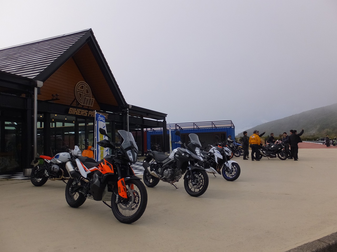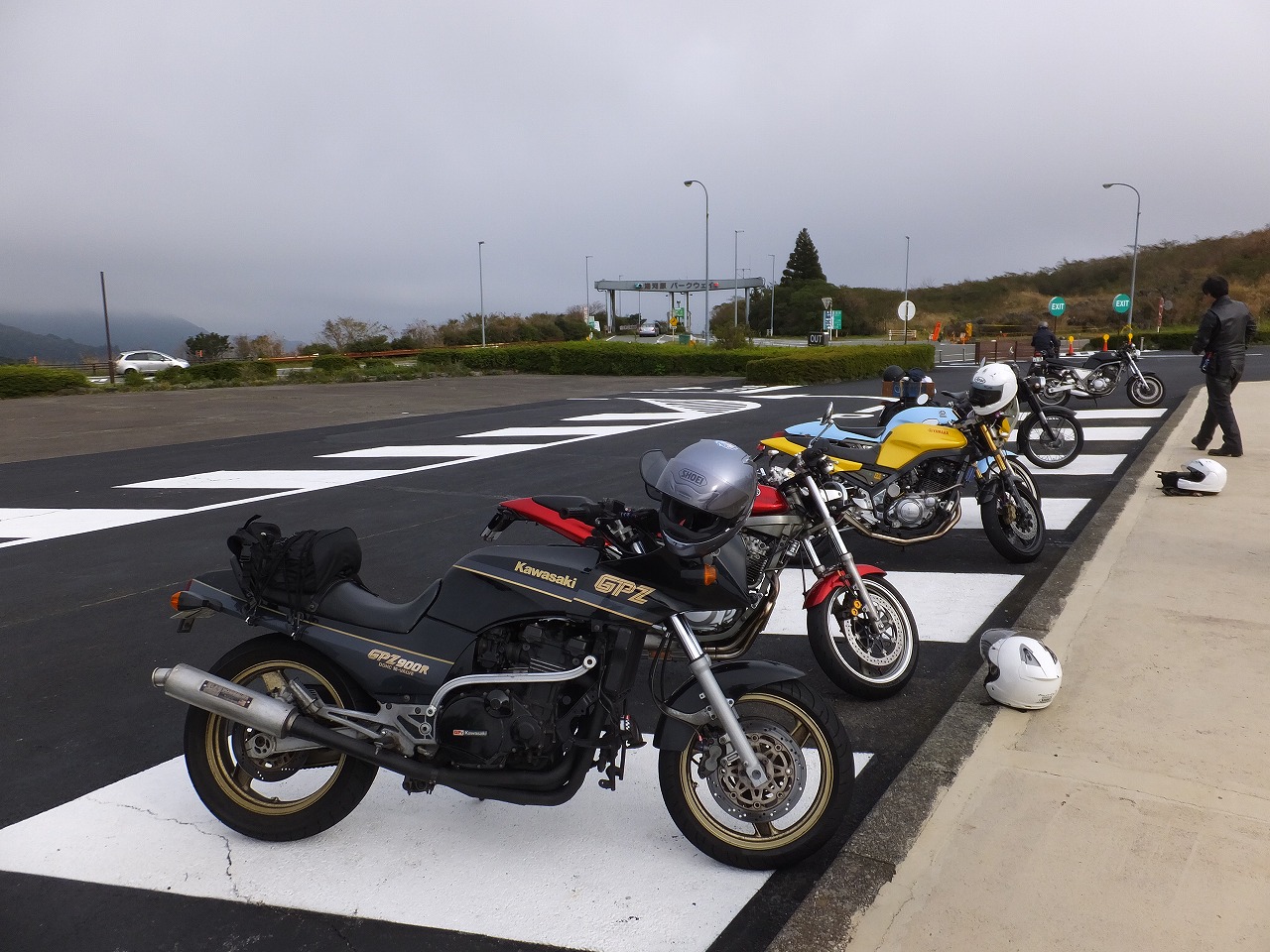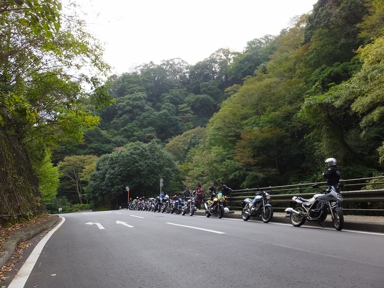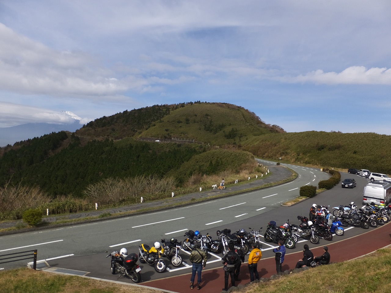 台風後の自粛モードと周辺道路の通行止めの影響で大観山もバイクは少なめ。