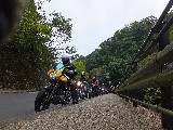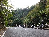 路肩にバイクを停めて後続を待ちます。来ない。来ない…。