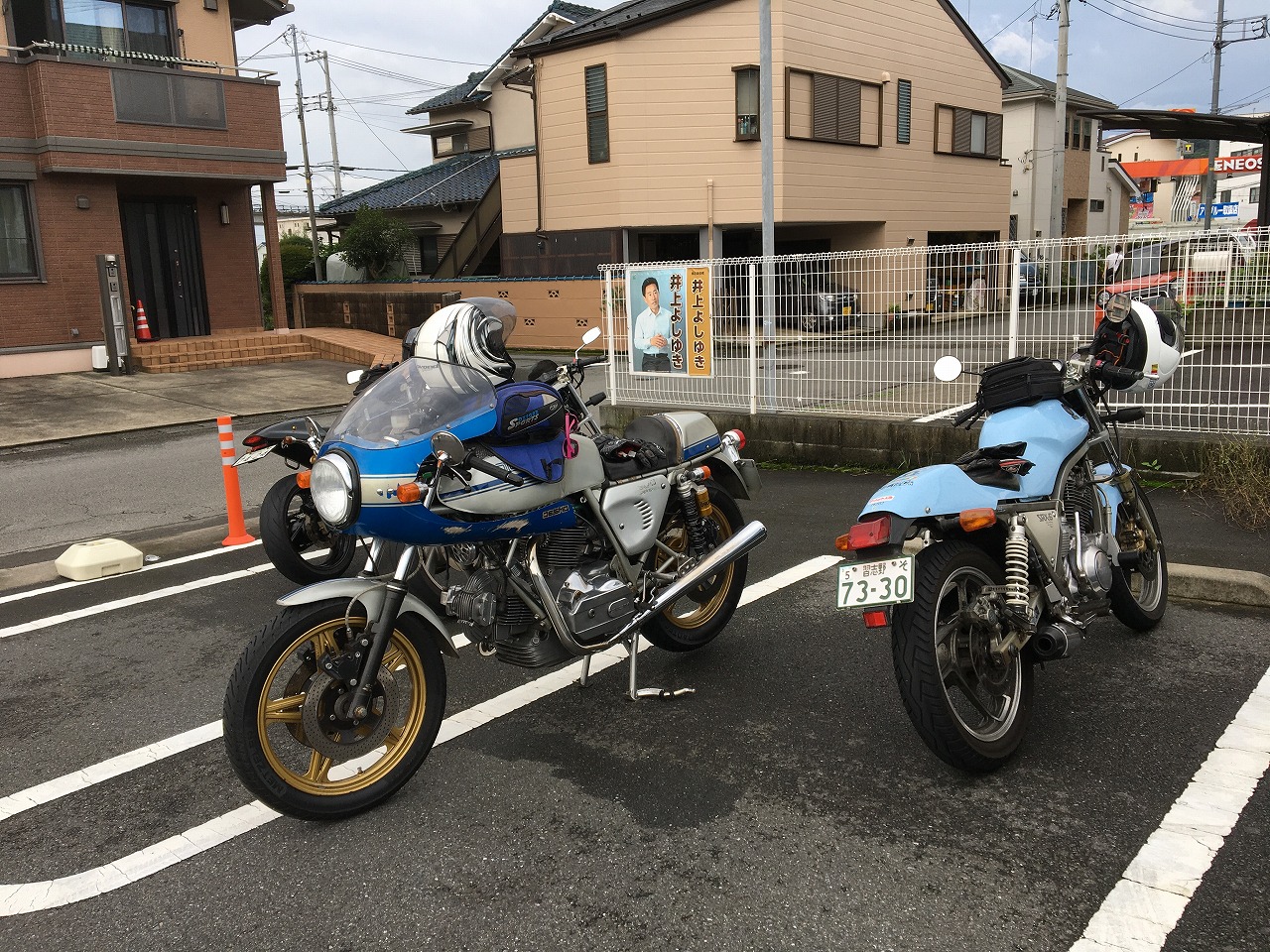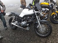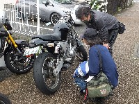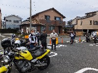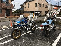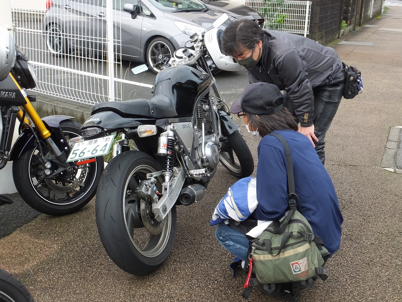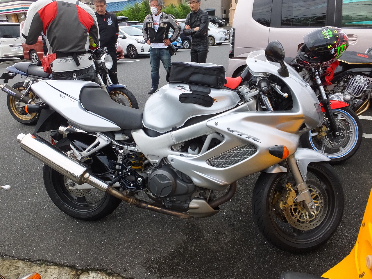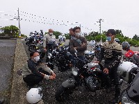 嬉しかったのが、昨年のラストman3で転倒されたURAZO氏の復帰。 「タンク凹んだままですけど」と照れ笑いのURAZO氏。そんなん、想い出、想い出(笑) 社会人2年目(だったよね?)のめってぃくんは、乗り換えたばかりのVTR1000Fで参加。 |