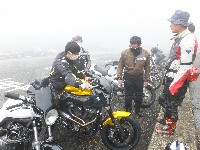 昨晩の嵐により、椿ラインのコンディションが最悪であることは想像に難くない。 てなわけで、いつもより1時間も早く、霧に包まれた大観山に到着。 |
