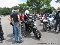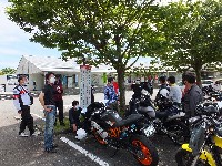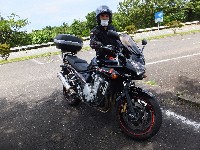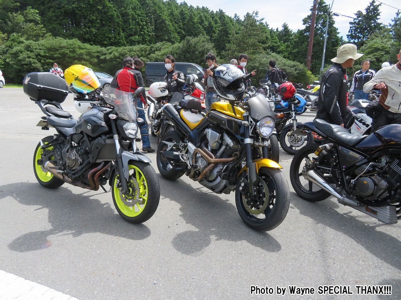 最果ての地、愛知から2回続けてご参加のTickler氏。 Yui姐さんのMT-07(688cc)とtakaちゃんのMT-01(1670cc)。 |