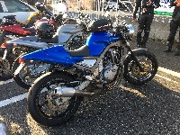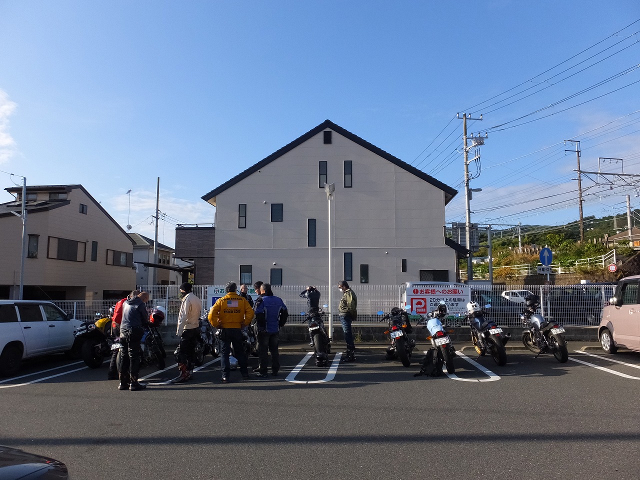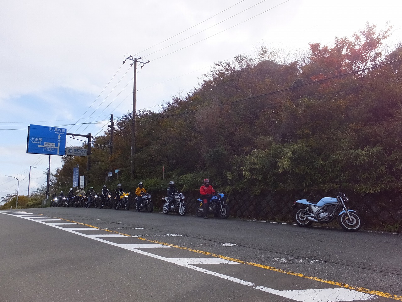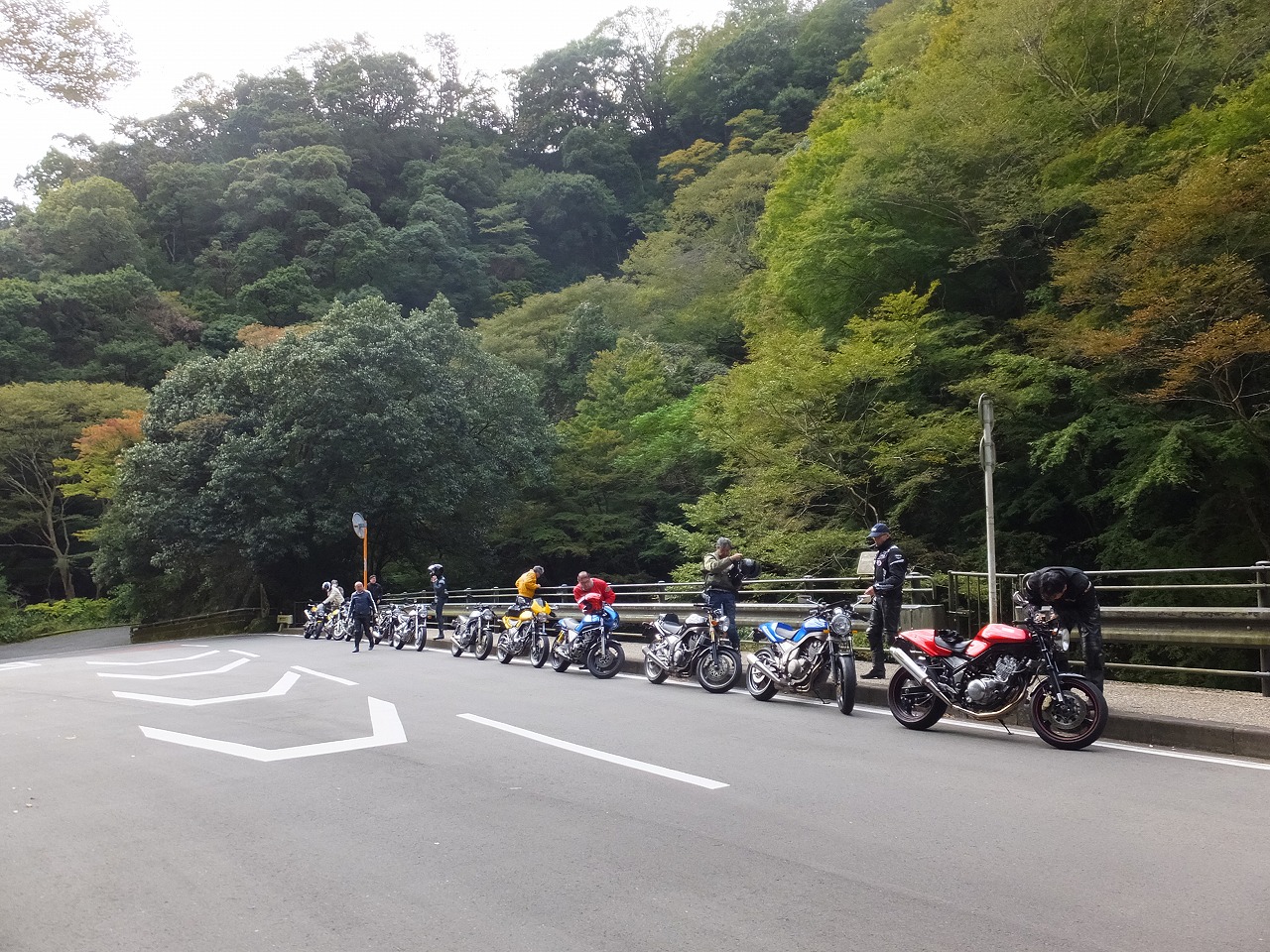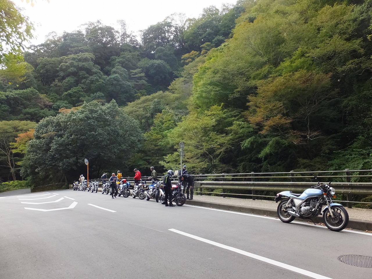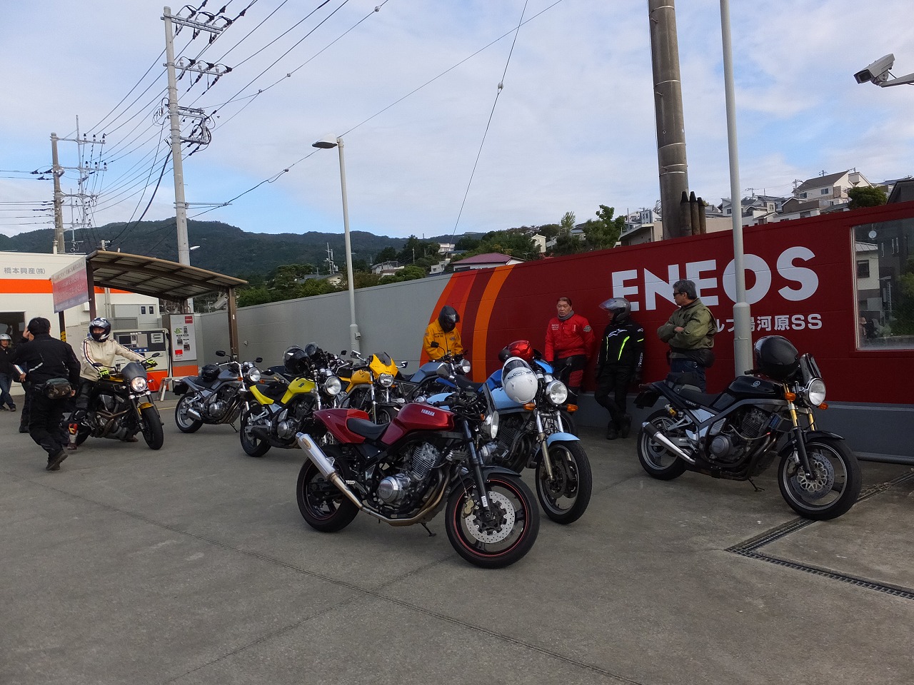久しぶりに。実に久しぶりにワインディングを快走して亀石PAに到着のman3ご一行。 一年ぶりに33氏登場。トレードマークのオフ用メットも健在。 |