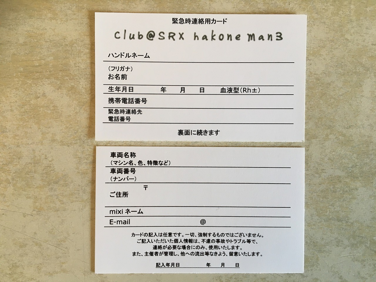 なにげに箱根man3が始まる前からのおつきあいとなる寅楠氏。お互い、歳を取りましたねぃ。 数々の伝説を造ってきたgizおぢさんのSL230(通称SLタン)。 ちょっぴり遅刻の33氏。メットの下でも顔芸してくれるサービス精神。 |