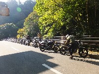 最新のiPhoneで椿ライン麓のえらやっちゃな隊列をパパラッチ中のToraiwa氏。 |