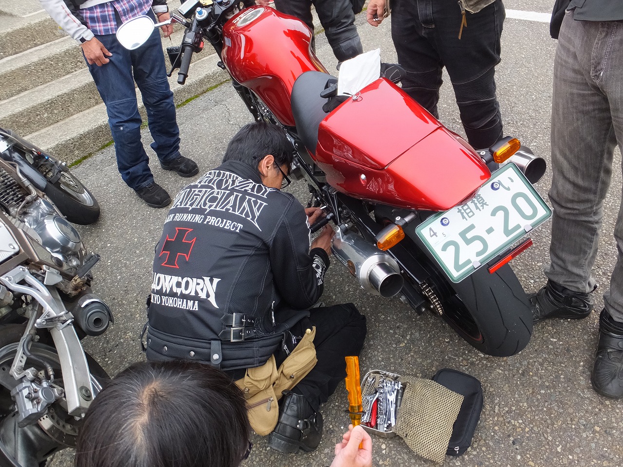 すっかり人だかりになっております。蜜ですよ?(そろそろ死語でよいよね) どーにかこーにか応急処置を済ませて、再び隊列に加わるBSF号。 |