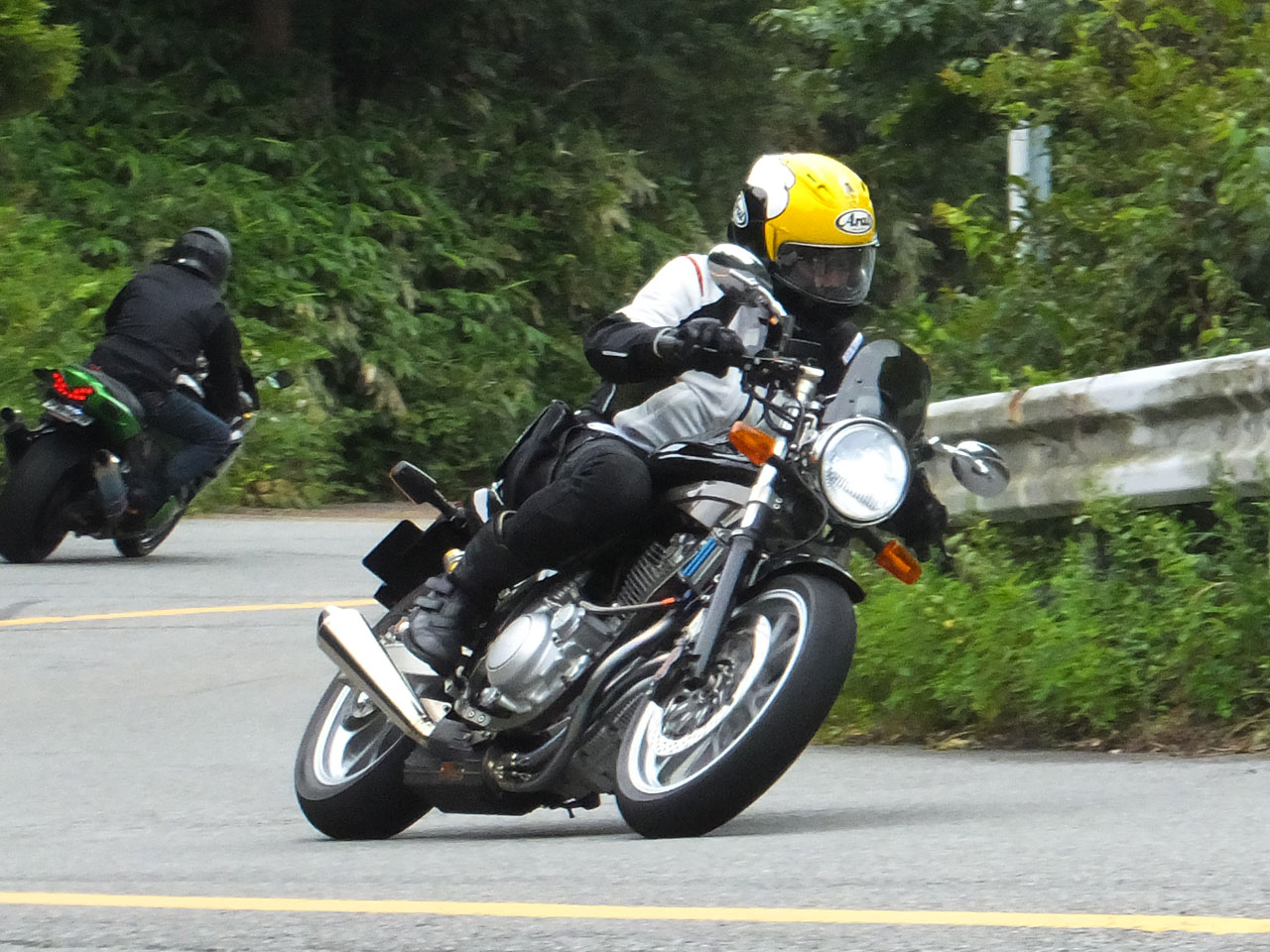 このコーナー、意外と難しいので、一般のライダーは大抵よたよた曲がってます。 SRX乗りたちの通過速度は確実に2段くらい上。 だけど、地元の走り屋ほどえげつなくはなくて、程よく自制してる。 そゆとこ箱根man3だなーと思います。