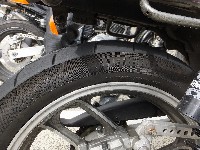 進化が止まらない、だっと氏のマシン。 Bituboのフロントインナーカートリッジに加えて、 圧倒的な性能と言われるコンチネンタルクラシックアタック(中古)を投入。 外装をオールペンして、『阪急電鉄号』の称号を得る。 勝手に命名しました。オーナー的には不本意?(笑)