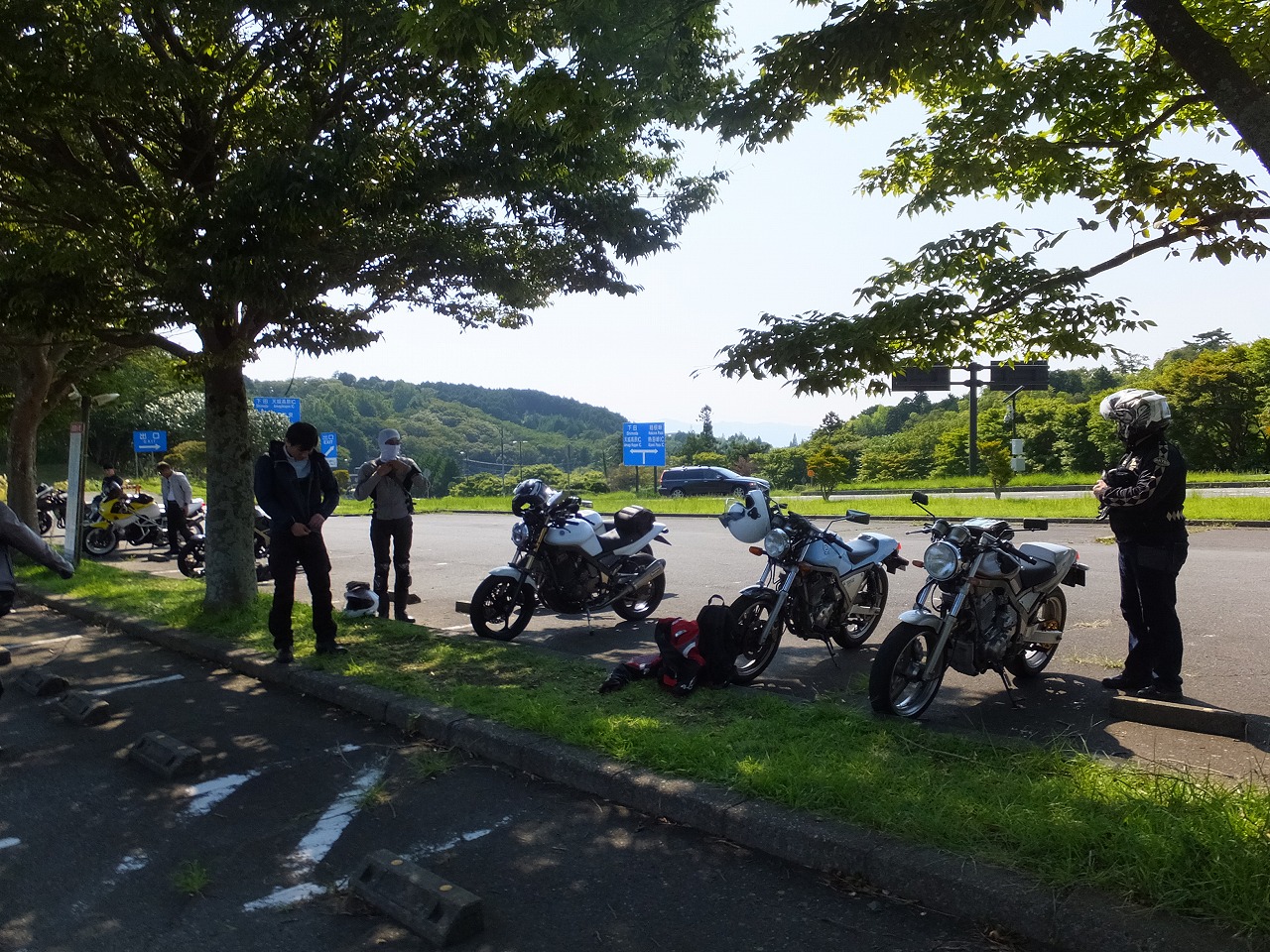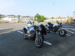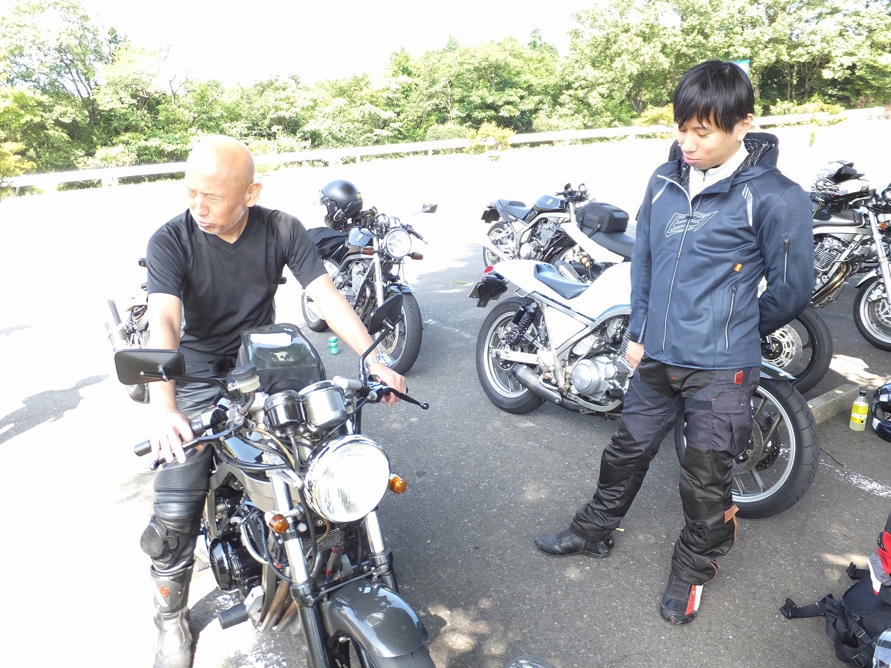 1613氏に試乗を依頼し、サスセッティングのアドバイスを仰ぐベン太郎氏。 「フロントフォークダメ出し貰いました」 ぽよんぽよんですものね(笑) A案:がんがる。