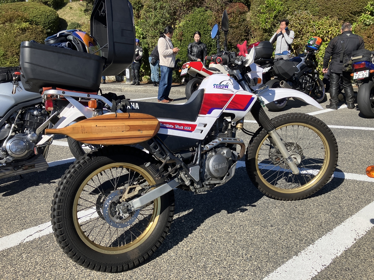 大観山に伝説のまな板セロー見参。 ハンドルバーにカエンダケ(猛毒茸)。リアキャリアにミミックを搭載(牙は抜いている)。 レッサーパンダの威嚇的な、抑止力としての実用機能を追求したカスタムです(違)