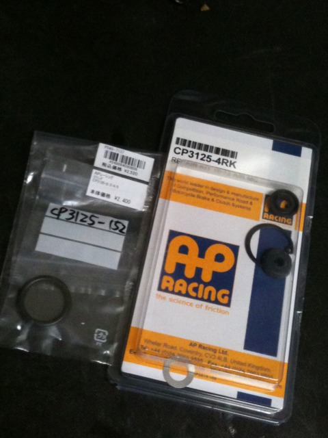 APのタンク一体式マスタシリンダCP3125は二種類のシリンダのボア(径)があるが、外見はまったく一緒。 ・CP3125-2:φ19mm ・CP3125-4:φ15.9mm(5/8インチ) 今回そらいろ号に装着しようとしているのはCP3125-4。 実はオクで落札したブツは、手元に届くまでシリンダ径がわからなかった。 ノーマルと同じ5/8インチでラッキー。 (※同じ初期型でもフロント17インチモデルのシリンダ径はφ14mmです)