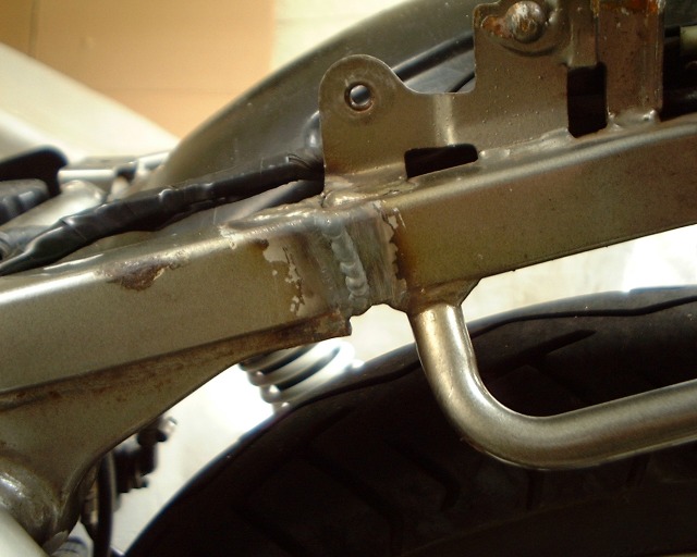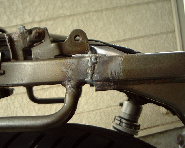 【後日談】(2011/02/21) この後、そらいろ号は某所にてフレーム修正を受け、事故の前よりよく走り、よく曲がるバイクに生まれ変わりました。 そのときのフレーム修正については、以前にかなり突っ込んだ内容の記事を書いたのだけれど、 (あまり愉快とは言えない)様々な事情から現在では公開することができません。 ときどき、自分で書いたのをこっそり読み直して「うん、あのときはよくやったよな」と、自分を褒めてあげることはあります(笑) そらいろ号で二人乗りはしません。 折れたシートレールはしっかり溶接してあるから大丈夫とは思うけれど、 万が一ってことがあるからね。 |